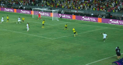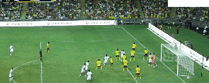 第45+6分钟,凯西接到队友左路倒三角传中后,直接起脚远射,皮球折射入网,吉达国民在半场结束前,压哨将比分追至1平。